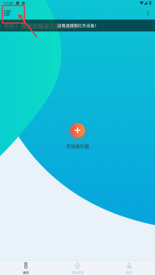2在侧边栏找到并点击添加遥控器的选项,随后会跳转至设备类型选择界面。