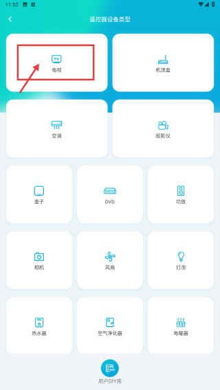 3、在设备类型选择页面,点击电视选项,即可进入品牌列表页面。