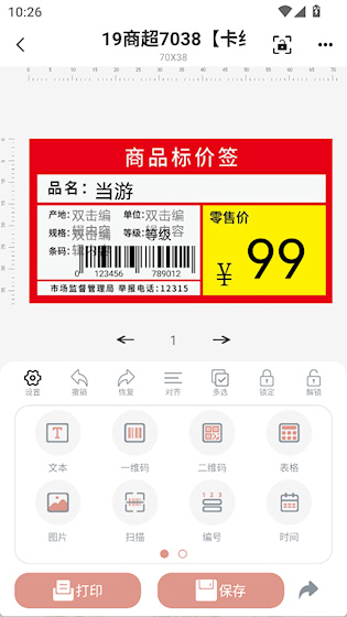 3、选定一个标签进行编辑操作后,能够直接打印该标签,也可以将其保存为个人专属的模板。