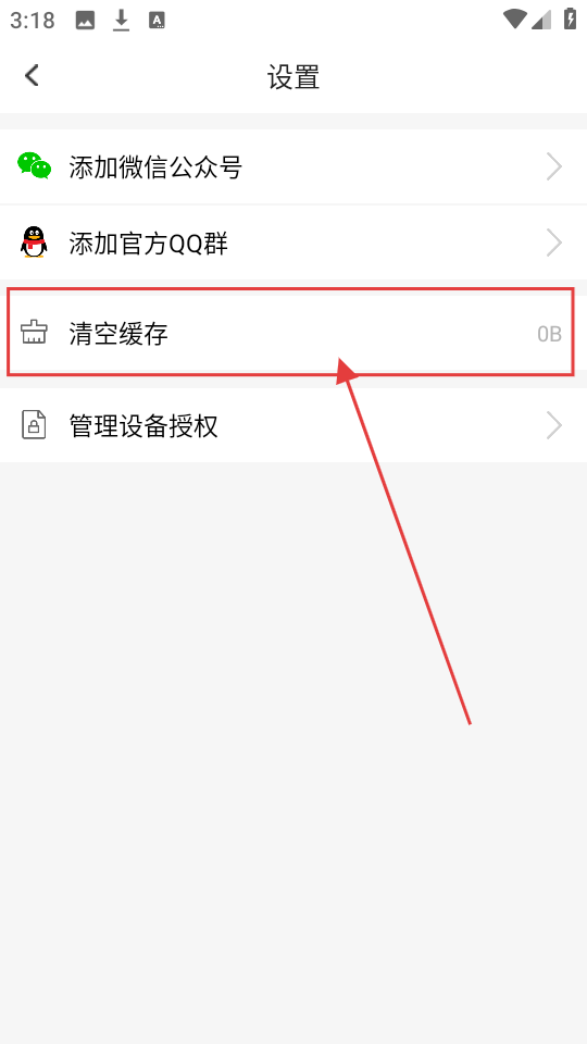 3、进入设置页面后,点击【清空缓存】选项,就能清理软件缓存,从而优化软件的运行速度。