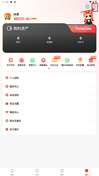1、启动海底捞应用,点击底部的“我的”选项,进入个人中心页面。