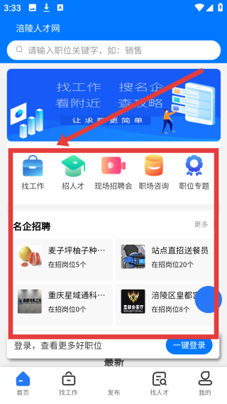 1平台整合了多样化的功能模块,求职、招聘等核心功能的标识清晰直观,同时设有线下招聘会、职业指导等实用入口。专区内集中展示了本地知名企业的岗位信息,涵盖了包括特色农业企业在内的各类用人单位。