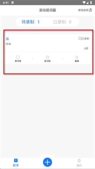 4完成保存操作后,返回剧本列表界面,找到刚才添加好的剧本,接着开展录制工作。