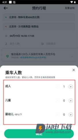 4、选择乘车人数。