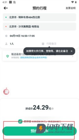 6、一切设置完成后,点击预约顺风车。