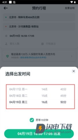 5、根据需求选择出发时间。