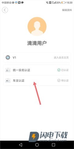 2、在新页面选择“车主认证”。