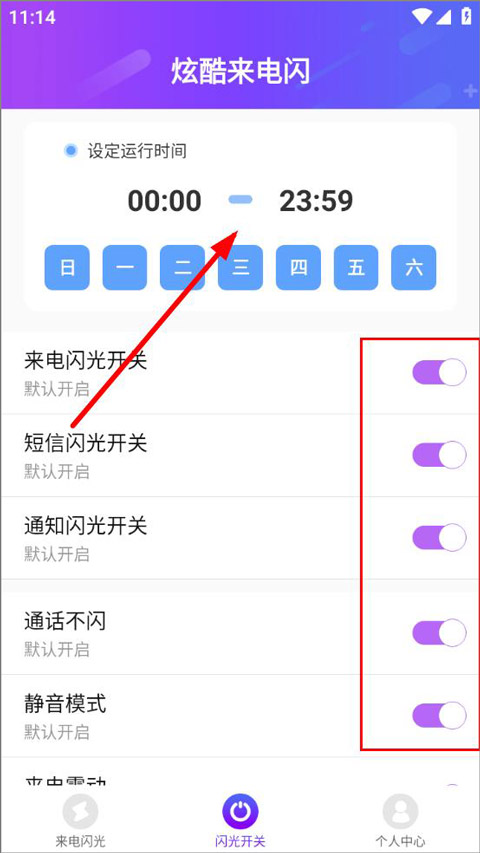 5请确认软件闪光设置里对应的闪光模式已开启,同时保证当前时间处于预设的运行时段内。温馨提示:预设运行时段中的星期选项是支持点击操作的!