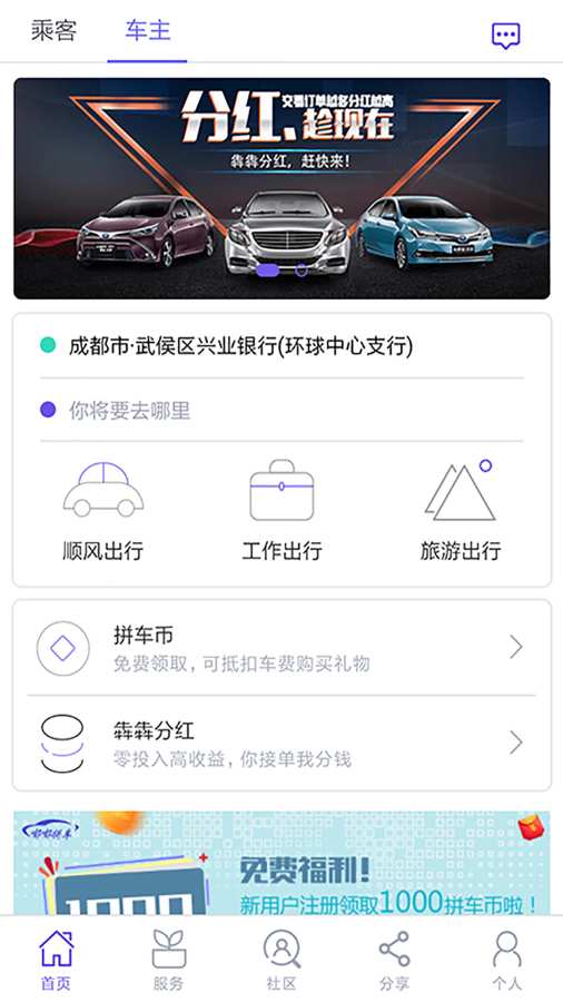 1、顺风出行:提供市内、跨城、跨省、工作、旅游等多种出行方式选择;