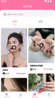 3你可以点击目标美业从业者的预约按键来完成相应操作,也可以进入其个人作品展示页面,浏览妆面造型、美甲设计等相关作品内容。