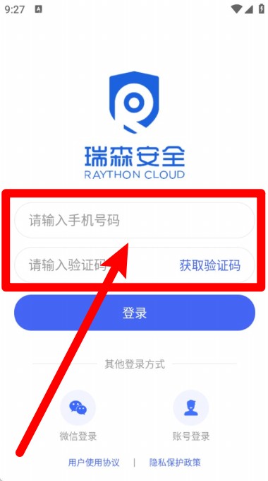2打开瑞森安全应用后,通过填写手机号并验证收到的验证码来完成账户登录操作。