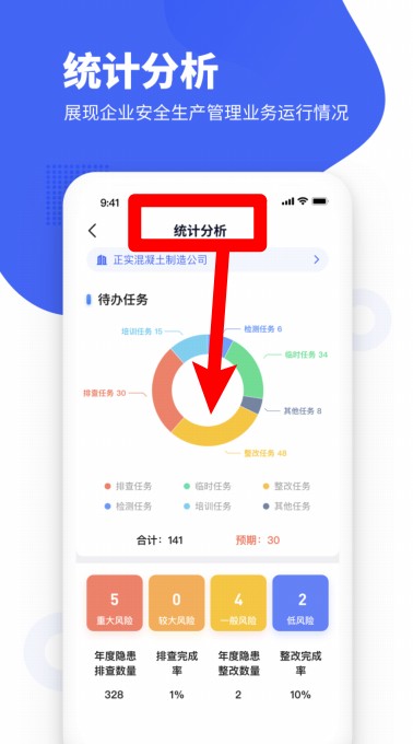 5在统计分析板块中,通过查看任务的推进情况与具体数量,能够高效了解企业安全管理工作的整体运行成效。