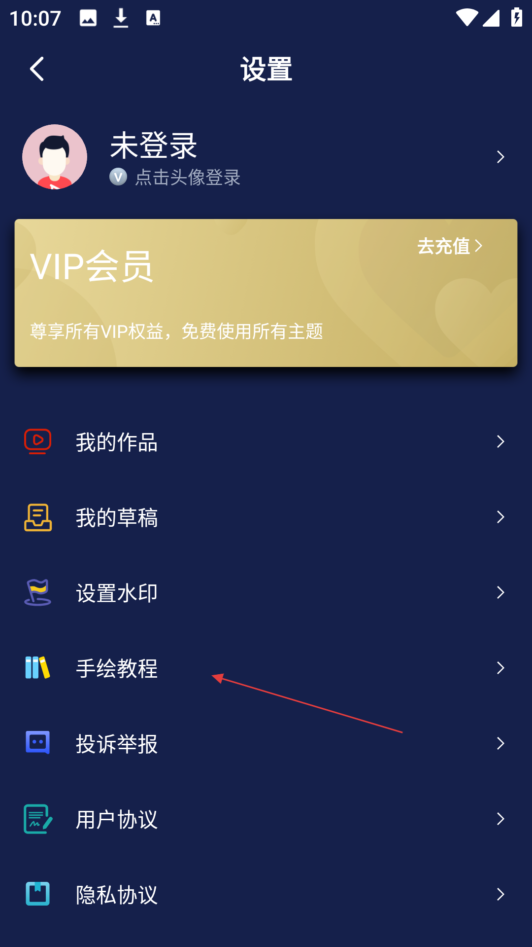 2、进入设置页点击【手绘教程】开启学习之旅。