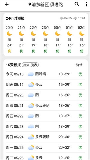 【逐小时天气预报】便捷查看24小时内天气动态,提前防范早晚温差悬殊。