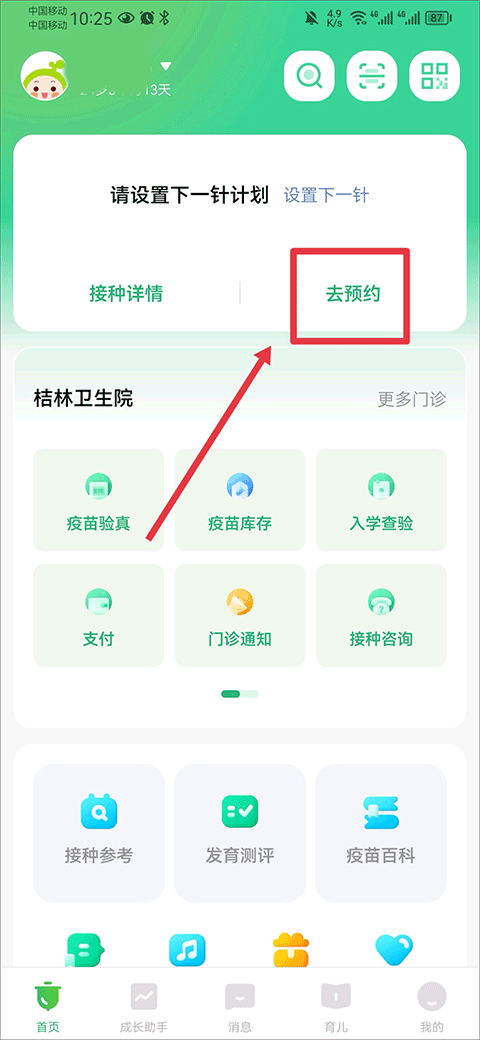 1、打开小豆苗 App,在首页里找到并点击“去预约”选项,进入预约界面。