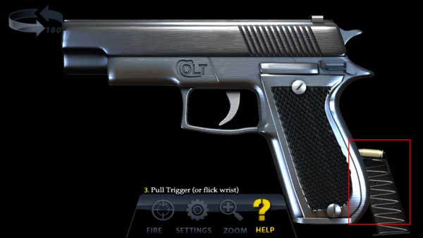 5、接下来第二步,朝着前方开枪,开枪时子弹数量会持续减少。等打完最后一发子弹,就能够更换新的弹夹。