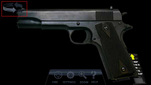 3、左上方的循环箭头指的是切换枪支的角度,不同角度看到枪支的形态都不一样。