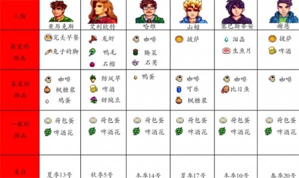 喜爱之物包括:铜锭、铁锭、咖啡、根类拼盘以及沙拉。
