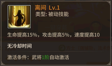 4、武将阶级:武将升阶可开启对应武将技能,开启更多武将技能可增加武将战斗力。