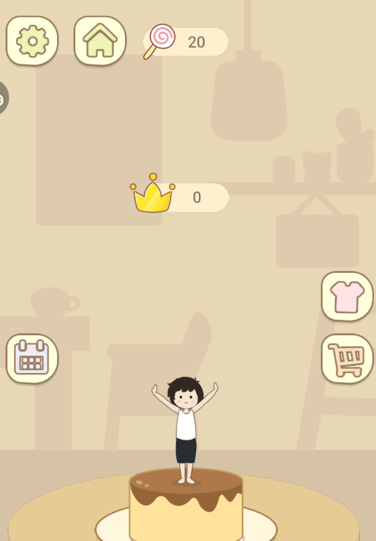 4、考验你的反应速度,点击屏幕,让角色跳到蛋糕上。要是你能精准抓住时机,就能跳到蛋糕正中央,从而获取更高分数。