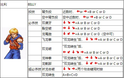 1、比利(Billy):男主,常称之为“小龙”,比利变身后的必杀技确实是龙,而且游戏名字就叫做《双截龙》,叫小龙还蛮贴切的。
