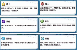 英雄们的职业会分为骑士、战士、法师、游侠、潜行者以及医师。