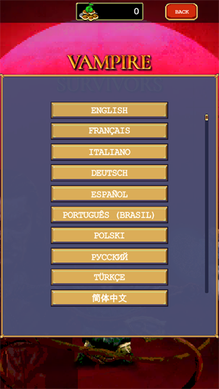 1、在本站下载安装吸血鬼幸存者手机版,进入游戏主页,可以发现游戏主页是英文系统,如图;