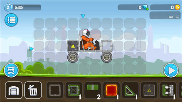配件购买指南:骷髅车架虽有独特作用,但耐久较低,一碰即炸,不适合用作车体大梁,也无需升级其耐久;陀螺仪对于重车体作用有限,若非必要,可暂缓购买;滚轴是实用配件,可放置在车前部作为缓冲,使用时注意上方不要有阻碍物;排气管单个作用不明显,但重量较大,可攒一个用于配重;摩托车轮胎缓冲小、尺寸小,实用性欠佳;车坠落时下方连接点受力大,易断裂,因此脆弱部件应尽量往上放置;此外,部件连接点具有一定韧性,特殊情况下可巧妙利用这一特性。