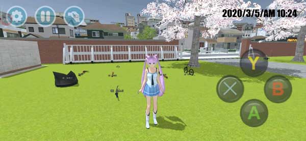 4、学校前方的草坪上摆放着各式各样的工具,其中绝大多数是武器,此外,还有球类、铲子、甲板刷以及包包。没错,这是一款具备杀人设定的游戏,武器的数量颇为可观,只是游戏并没有说明杀人的原因。当女主拿起某些武器时,会做出专属动作,即便是可爱的萌妹子,也能借此展现出帅气的一面。在游戏过程中,杀人时会有血迹溅到角色身上,经过作者多次测试发现,枪和魔法帽相较于其他武器,不太容易让血迹溅到身上,而其他武器则更容易溅血。所以,如果想要较为隐蔽地杀人,不妨考虑选择这两种武器。在游戏里,魔法杀人的威力堪称最强,只需轻轻一挥手,就能让一大片人丧命。