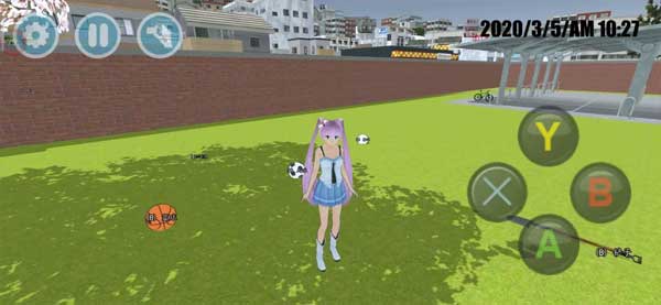 5、左上角的设置功能极为丰富,具备多种实用操作:可以传送到众多不同地点,随时随地更换衣服、发型等外观元素,还能够改变天气、随时获取武器以及对时间进行调整。其中,“头发物理”选项能让头发呈现随风飘动的效果,开启“陀螺仪”后,手机摇晃时镜头会随之改变,另外还能对阴影进行设置。在此建议大家勾选那几个跳跃选项,这样一来就能跳得非常高,有种在空中飞行的感觉。作者认为跳跃是最为便捷快速的交通方式,玩家可以随时随地从教学楼楼顶跳到操场,或者跳到街道上,自由选择降落地点,不过需要注意上方不能有天花板。该游戏地图规模不小,足够玩家花费一些时间去探索。游戏中设有游泳池,玩家可以游泳,旁边还配备了淋浴间供玩家洗澡,体育馆则能用来打球。