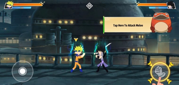 1. 首先,玩家需在本站完成《火柴人忍者大战》游戏的下载和安装,完成后打开并进入游戏。一进入游戏,战斗界面演示就会呈现出来,玩家按照对话提示,能更快熟悉游戏操作。通过点击屏幕左侧的按钮来进行移动,慢慢靠近对手。