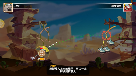 2、隔断敌人上方的绳子,可以一下子解决所有的敌人。