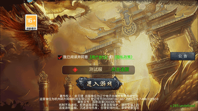 1、运行游戏,在标题界面勾选“我已阅读并同意用户协议和隐私政策”,然后找到并点击“进入游戏”选项,就能进入游戏。