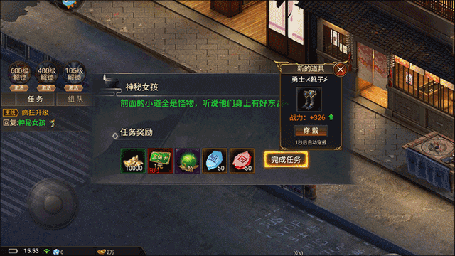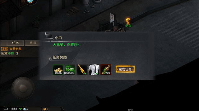 5、然后在街头继续选择并点击“完成任务”的选项即可获得任务奖励;