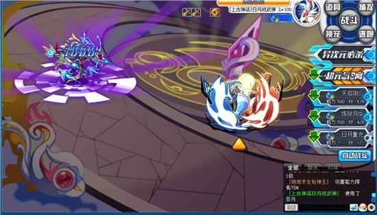 我方配置:传奇逍遥+须佐之男+(女娲+万灵王/乱舞/赫尔薇尔)+【上古神话】日月战武神(主体神武月)