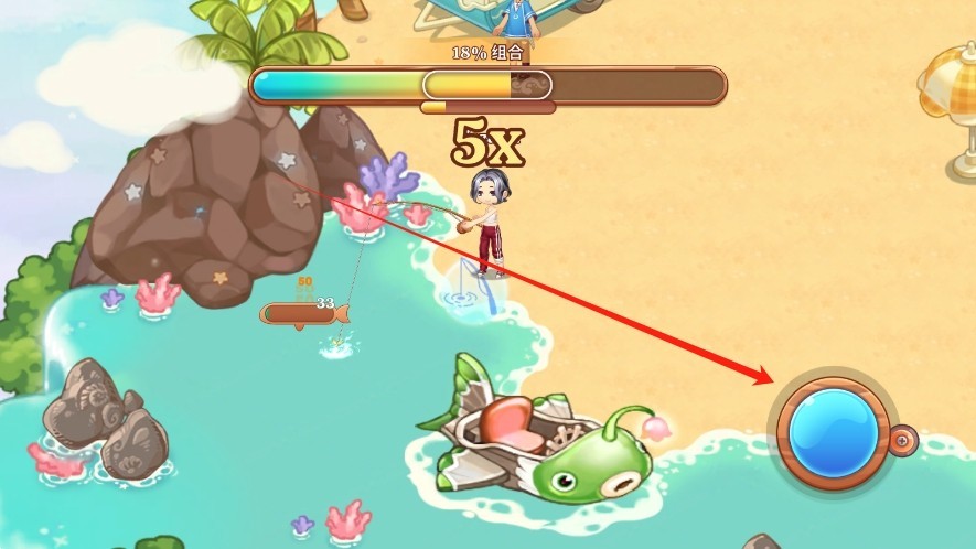 4、轻点右下角的按钮,即可开启钓鱼操作。