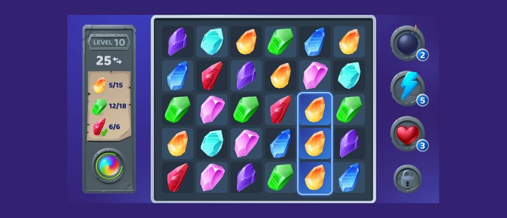 3、道具的巧妙运用:当面临棘手、难以解决的局面时,切不可盲目地使用道具。应当依据实际情形,挑选最为合适的道具。举例来说,要是宝石块在某一片区域集中分布,此时使用炸弹宝石,就能收获事半功倍的成效。