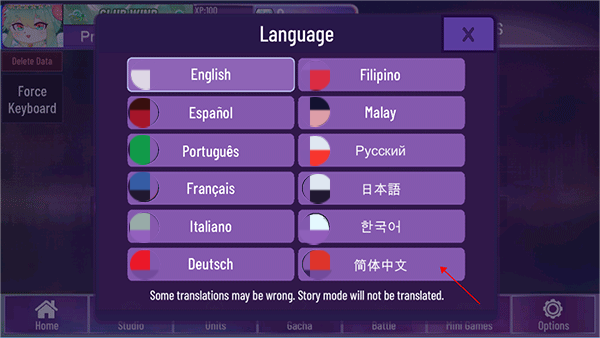 1、进入游戏后,在主界面点击右下角【爱心图标】,可以设置【简体中文】