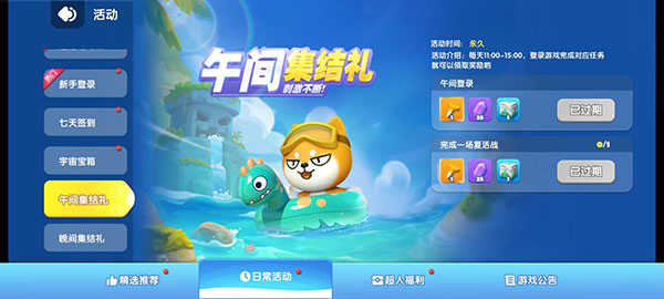 每日中午11点至15点、晚间19点至22点登录游戏,完成相应任务就能领取奖励。每天还可领取限时登录宝箱,有机会获得高品质礼物。