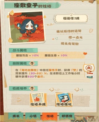 1在《阴阳师:妖怪屋》这款游戏里,玩家需要培养形形色色的式神参与战斗。其中,式神的性格培养也是游戏中一个重要系统。随着式神性格的提升,其战斗强度也会相应增强。那么,阴阳师妖怪屋中性格究竟该如何升级?升级所需的用品又要通过什么途径获取呢?接下来,让我们一同深入了解。