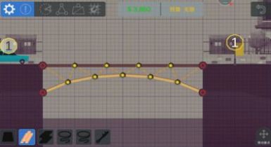 你可以利用场景里面的一些石头和固定点来建造,尝试一下用最少的钱做出可以通过的桥吧。