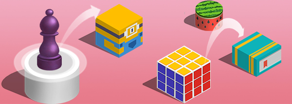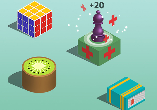 方块是随机出现的,颜色、形状、大小都不一样,每跳过一个物块+1分,如果正好跳到方块的正中间第一次跳到就可以+2分,如果连续跳到中心位置就能依次+2、+4、+6、+8……