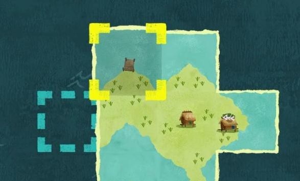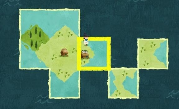 完成教学内容后,卡朵能够在一个渔夫边上捡到闪着白光的碎片,将其与现有地图拼接,形成新的地图,卡朵就能看到房屋出现在身边。