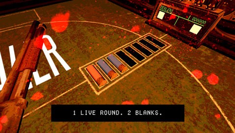 5、游戏规则十分简单,玩法类似于俄罗斯转盘。在桌子上放置着一把散弹枪,第一回合时,枪内有三枚子弹,其中2枚是空弹,1枚是真弹,后续回合里真弹的数量会逐渐增加。