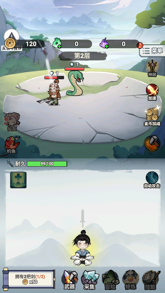 我不修仙只练剑内置菜单是一款修仙模拟手游,开局玩家将通过文字模拟来开启自己真正的修仙人生,进入到正式的修仙阶段之后,玩家将通过闯关击败各种魔物来提升自己的属性。在这段修仙旅途中,玩家将邂逅美丽小师妹,还可以召唤灵兽并肩作战。我不修仙只练剑游戏还内置自动挂机系统,玩家离线也能轻松获得经验升级,心动的朋友快来下载体验如何成为最强剑仙吧!