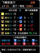 本作比较新颖的引入了转移魂魄的系统,通过完成与NPC之间的任务,玩家可以通过魂魄转移来更换主角身体,获得不同的属性强化值,首先我们来看看两张比较有代表性的角色属性截图。