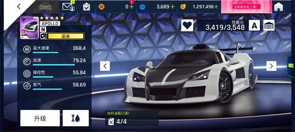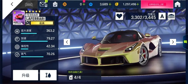 虽然面板加速只有79,但是实际加速还可以,氮气也是非常充足,缺点就是操控差半径大,过弯挺难受的,可以通过生涯以及A级杯获取。