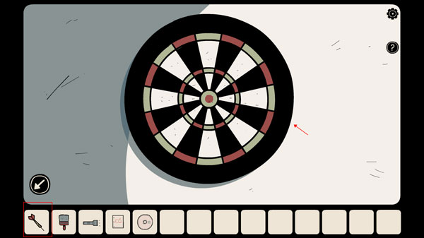 6、点击显微镜下方的柜子,从中获取手电筒以及带有化学方程式的镜片,接着在飞镖盘处拿到飞镖。
