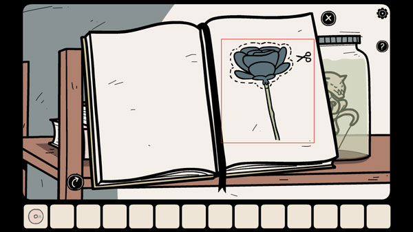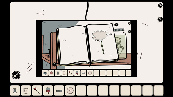 3、点击上方的书架上的书,需要用剪刀将那一页剪开。