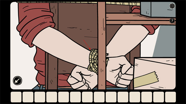 1、游戏开场,主角处于被捆绑状态,你得通过点击自身并摩擦绳子的方法来解开束缚。